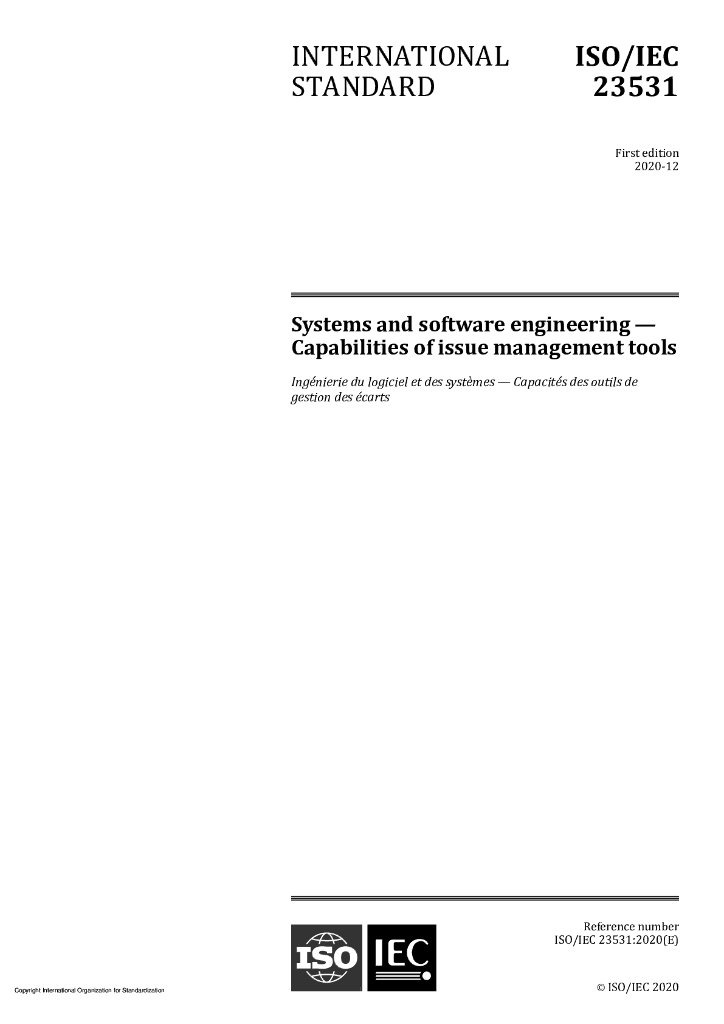 ISO/IEC 23531-2020 系统和软件工程 问题管理工具的功能