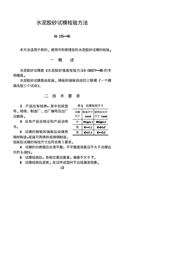 SL 125-1995 水泥胶砂试模检验方法