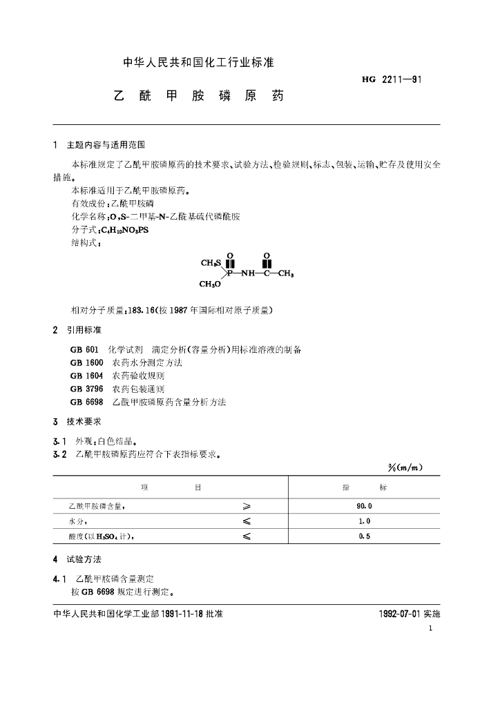 HG 2211-1991 乙酰甲胺磷原药