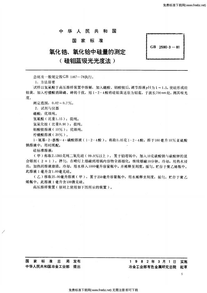 GB/T 2590.3-1981 氧化锆、氧化铪中硅量的测定 硅钼蓝吸光光度法