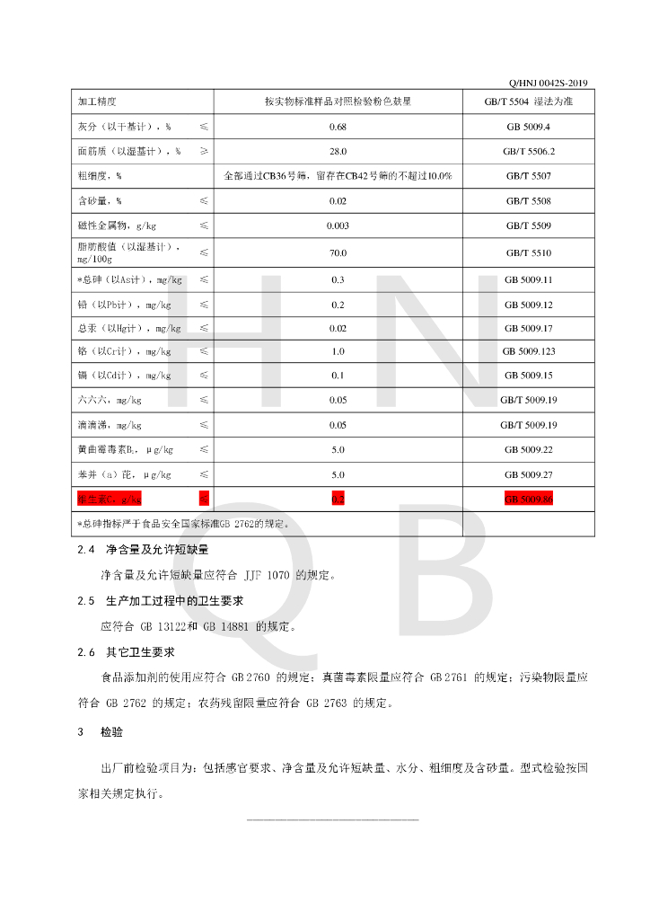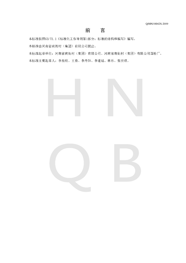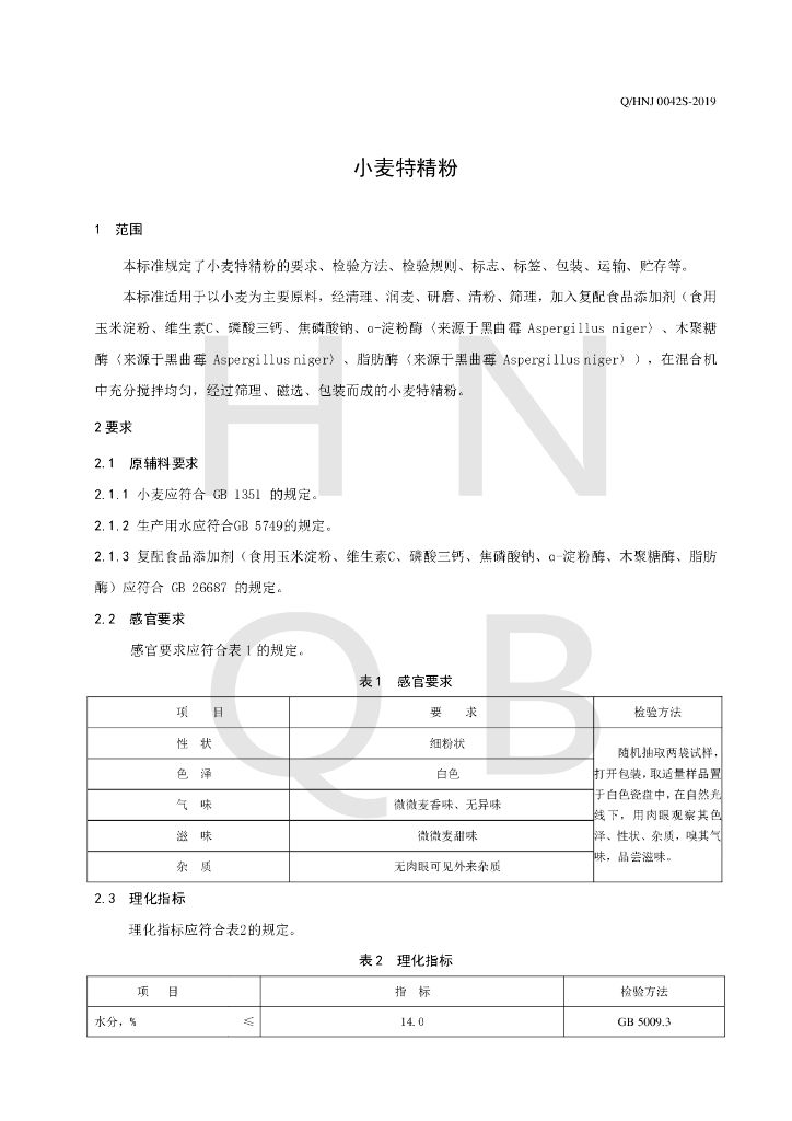Q/HNJ 0042S-2019 小麦特精粉