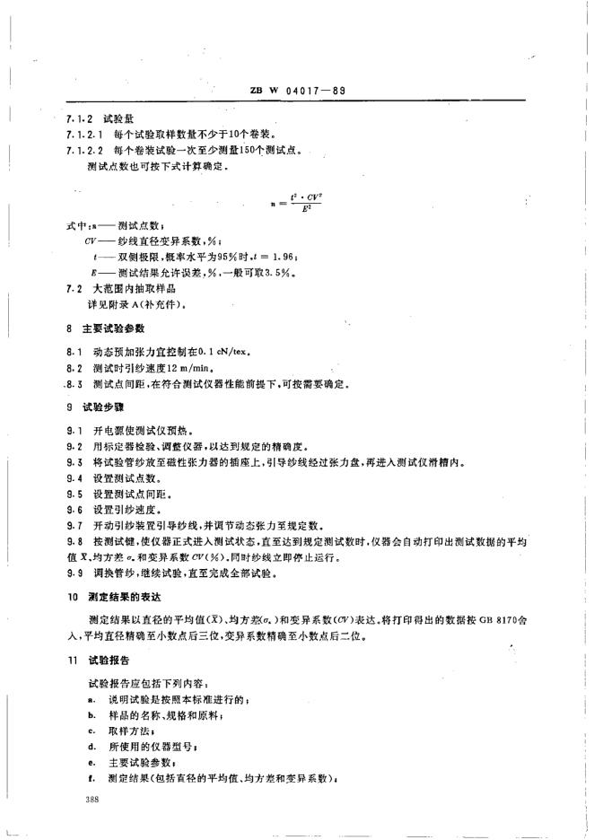 ZBW 0017-1989 纱线直径测定方法CCD测定仪法