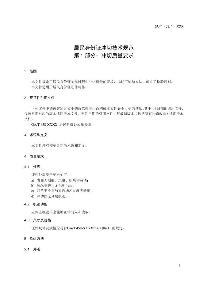 GA/T 453.1-2021 居民身份证冲切技术规范 第1部分:冲切质量要求