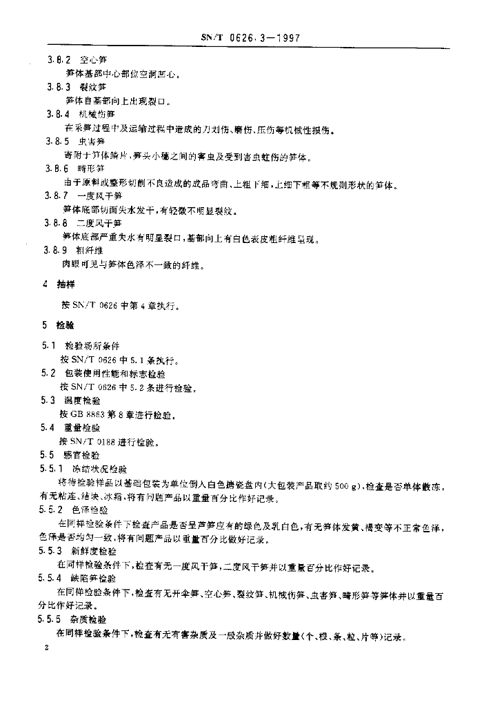 SN/T 0626.3-1997 出口速冻蔬菜检验规程 芦笋类