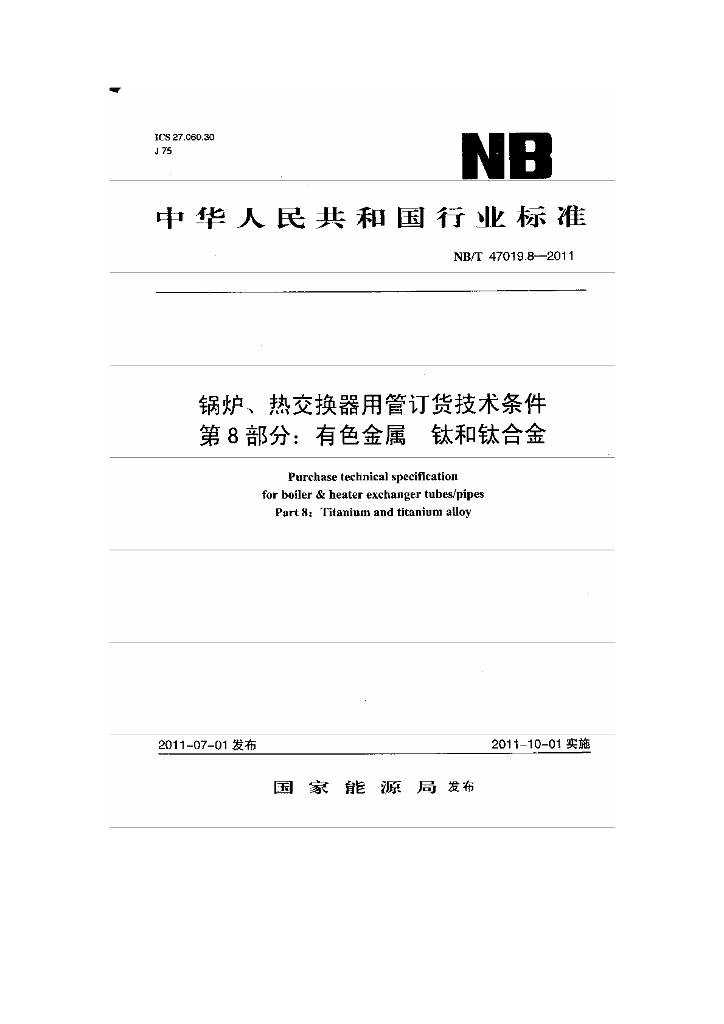 NB/T 47019.8-2011 锅炉、热交换器用管订货技术条件 第8部分:有色金属 钛和钛合金
