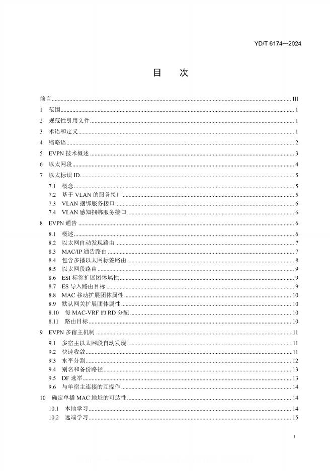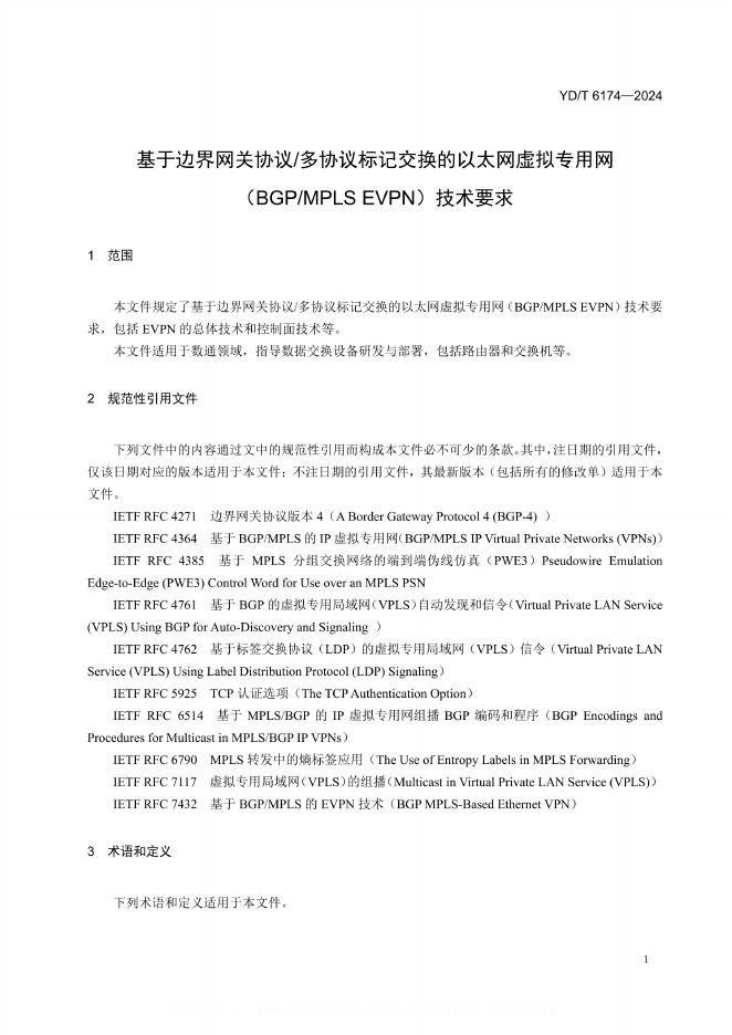 YD/T 6174-2024 基于边界网关协议/多协议标记交换的以太网虚拟专用网(BGP/MPLS EVPN)技术要求