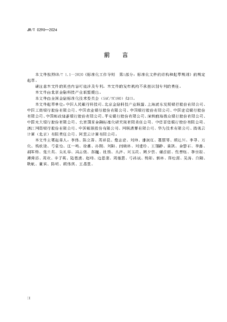 中国人民银行科技司、北京金融科技产业联盟、上海浦东发展银行股份有限公司、中国工商银行股份有限公司、中国农业银行股份有限公司、中国银行股份有限公司、中国建设银行股份有限公司、中国邮政储蓄银行股份有限公司、平安银行股份有限公司、深圳前海微众银行股份有限公司、中国光大银行股份有限公司、北京国家金融标准化研究院有限责任公司、中信百信银行股份有限公司、浙江网商银行股份有限公司、中国银联股份有限公司、网联清算有限公司、华为技术有限公司、腾讯云计算(北京)有限责任公司、阿里云计算有限公司