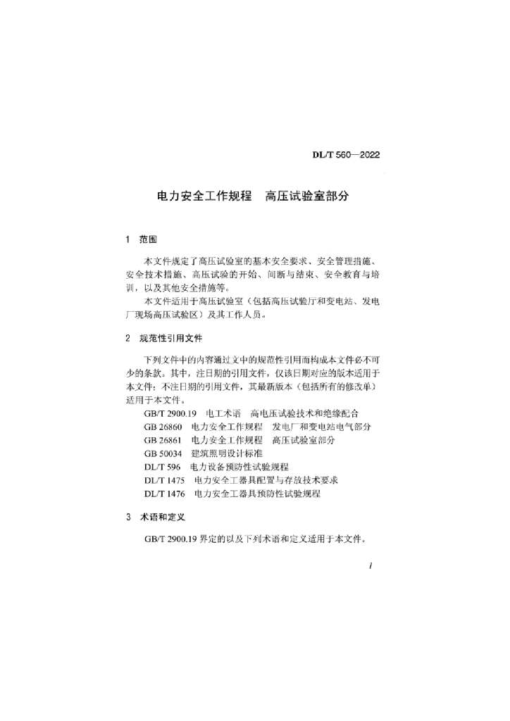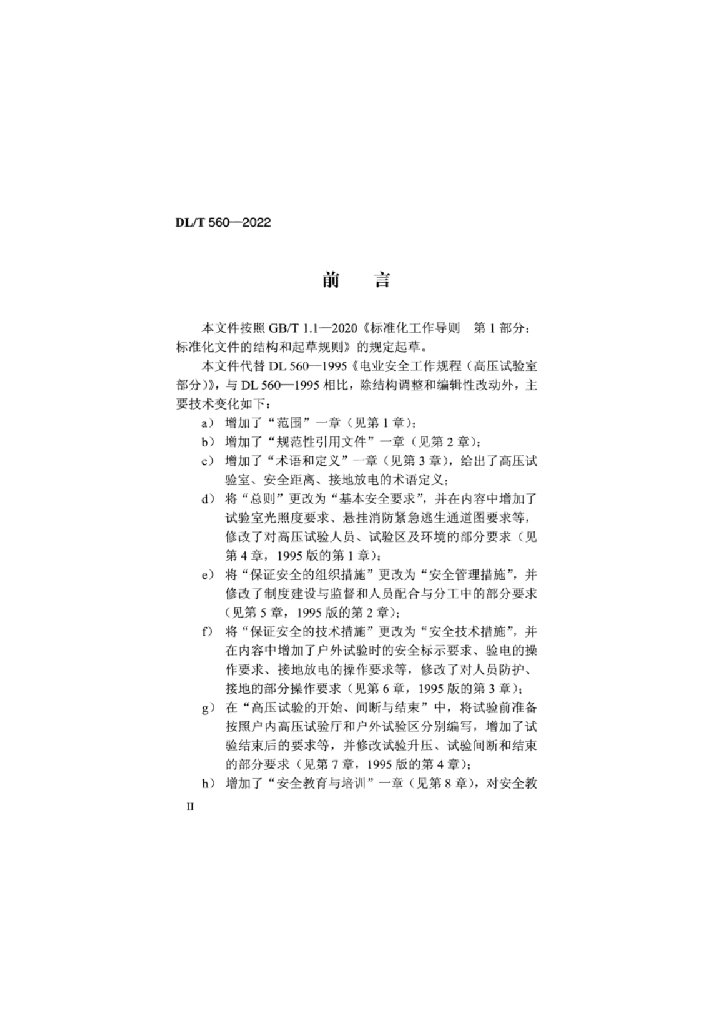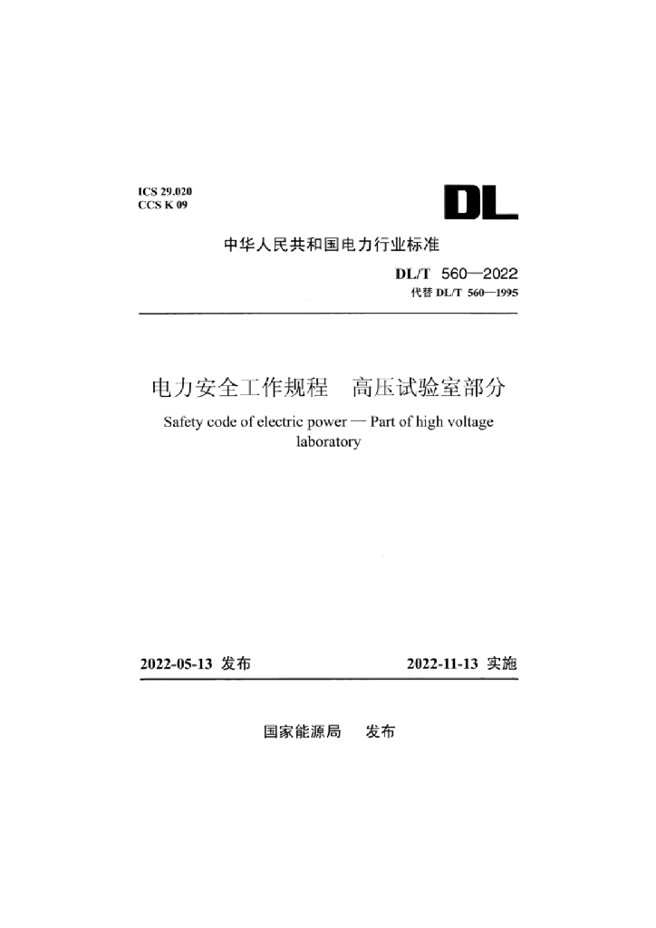 DL/T 560-2022 电力安全工作规程 高压试验室部分