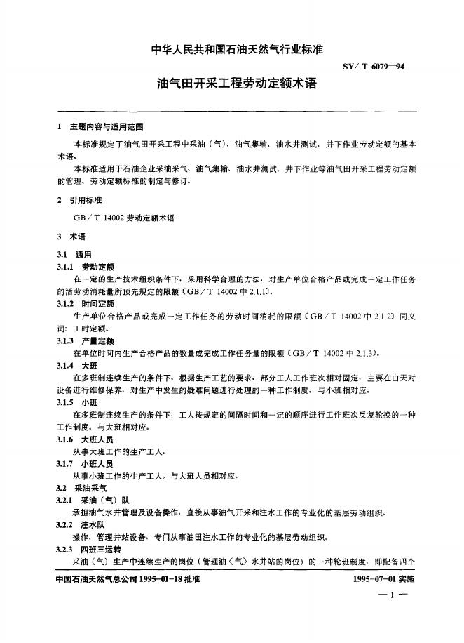 SY/T 6079-1994 油气田开采工程劳动定额术语