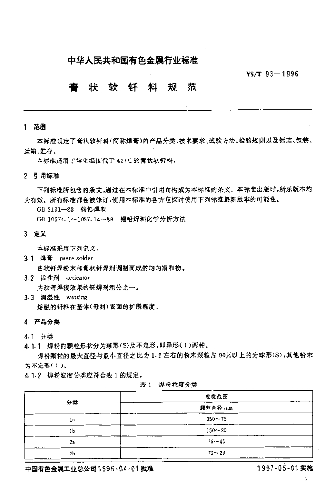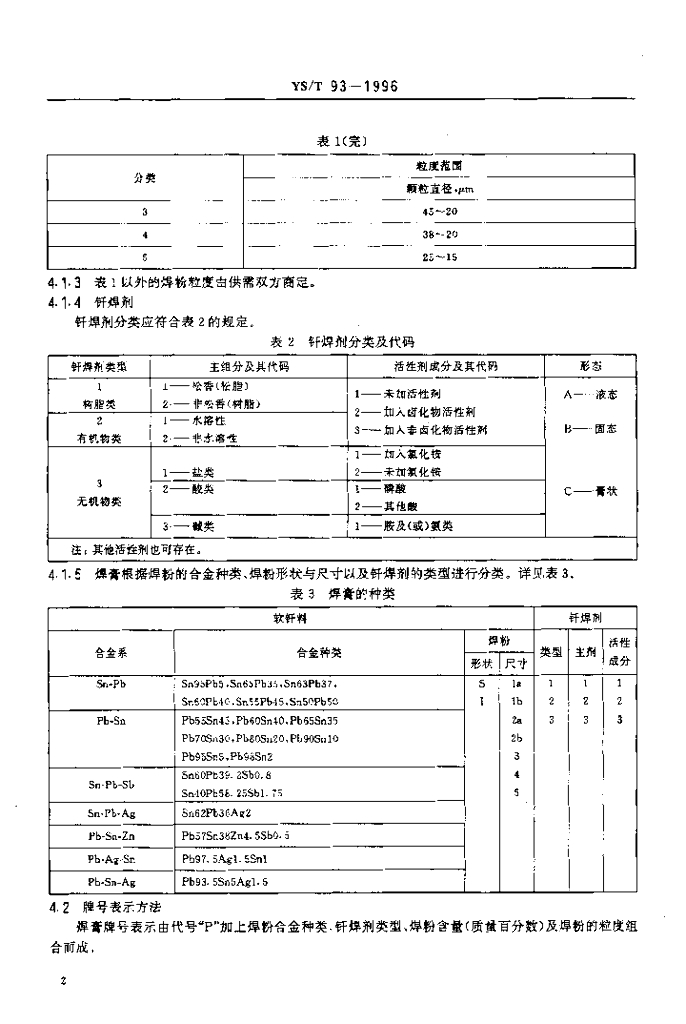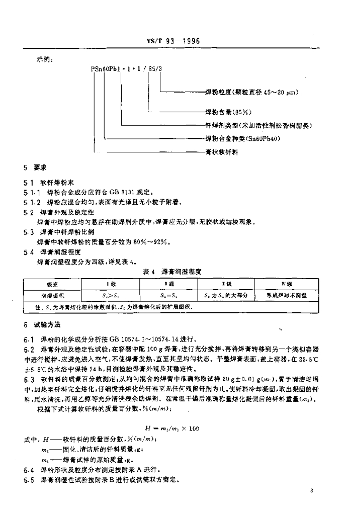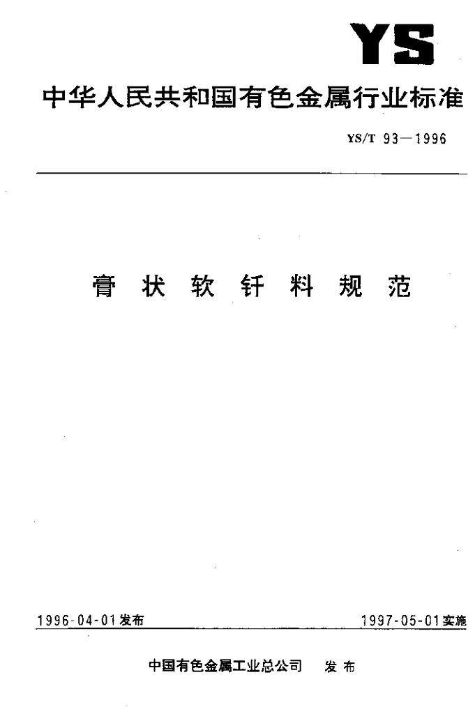 YS/T 93-1996 膏状软钎料规范