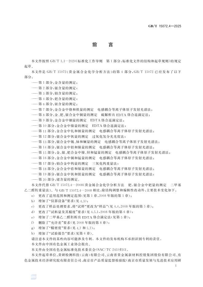 GB/T 15072.4-2025 贵金属合金化学分析方法 第4部分:钯含量的测定
