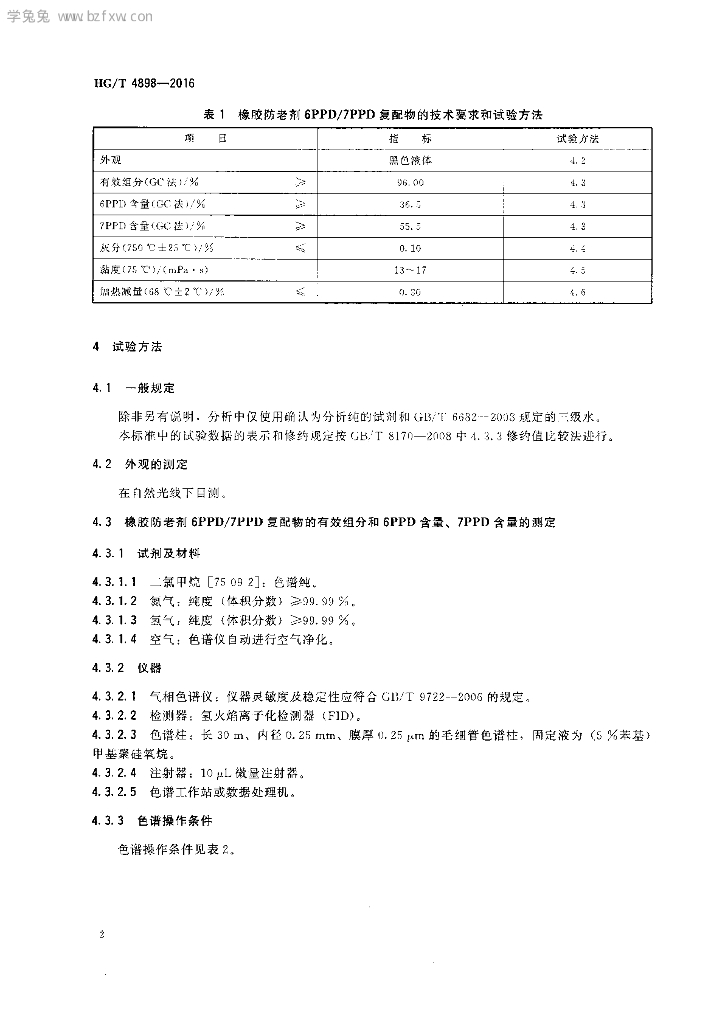 HG/T 4898-2016 橡胶防老剂 N-(1,3-二甲基丁基)-N’-苯基对苯二胺和N-(1,4-二甲基戊基)-N’-苯基对苯二胺复配物(6PPD/7PPD)