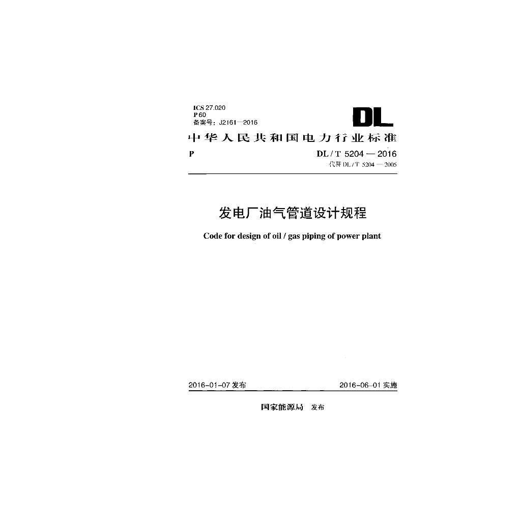 DL/T 5204-2016 发电厂油气管道设计规程