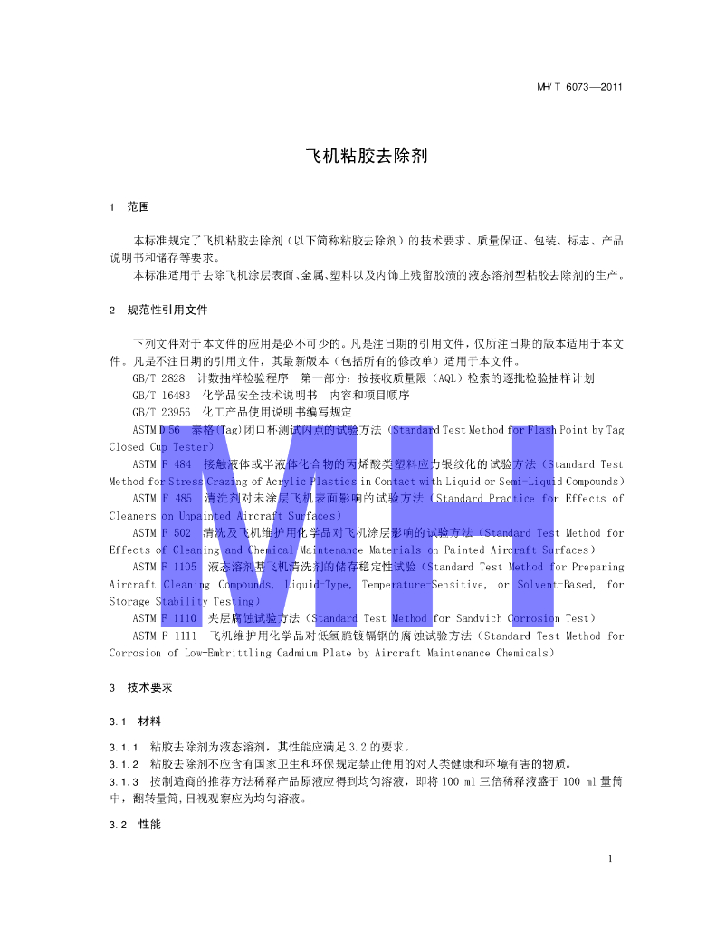 MH/T 6073-2011 飞机粘胶去除剂
