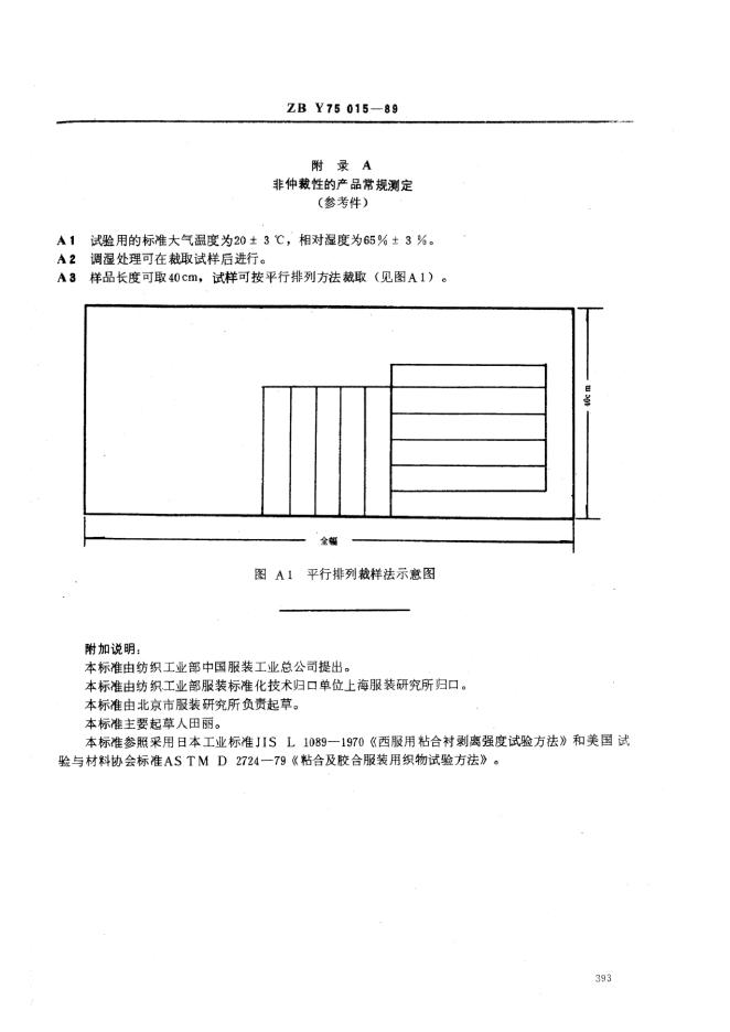 ZBY 75015-1989 使用粘合衬服装剥离强度测试方法
