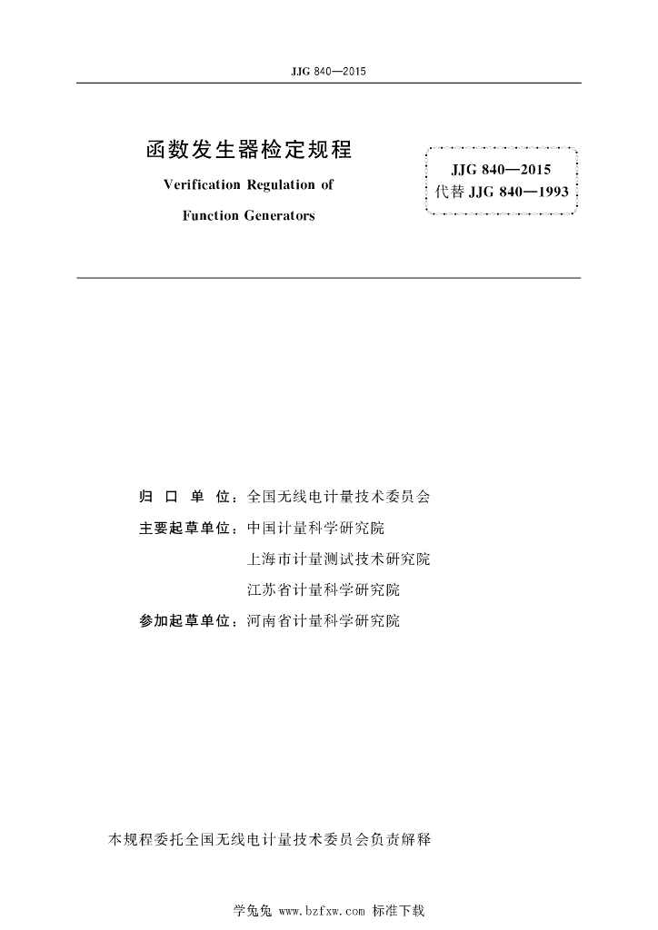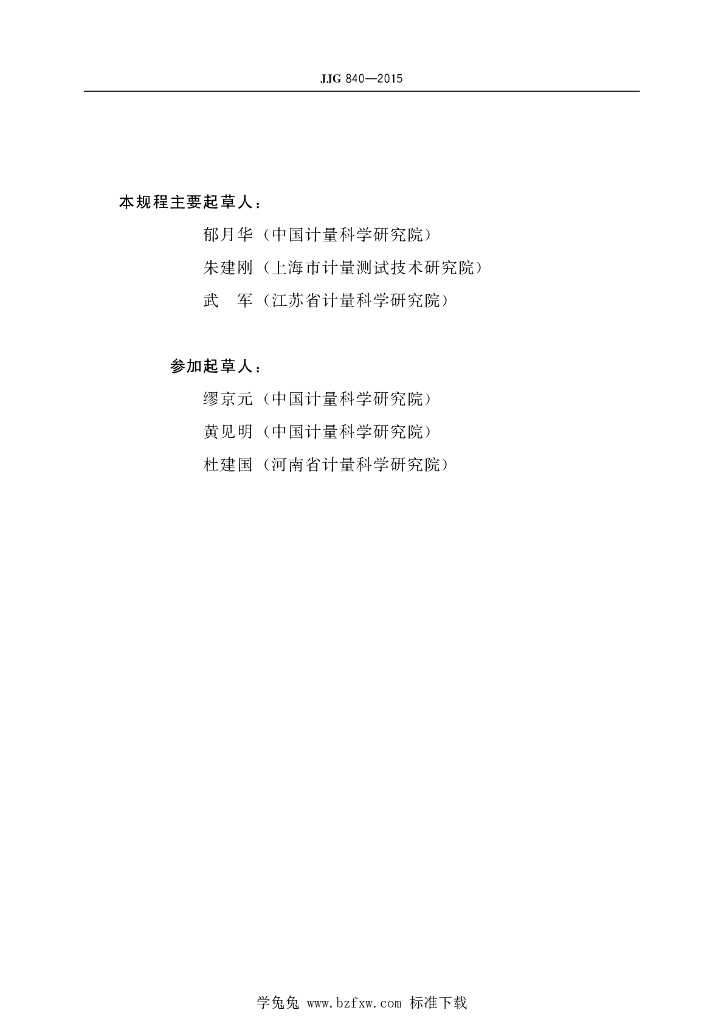 郁月华(中国计量科学研究院)、朱建刚(上海市计量测试技术研究院)、武军(江苏省计量科学研究院)、缪京元(中国计量科学研究院)、黄见明(中国计量科学研究院)、杜建国(河南省计量科学研究院)
