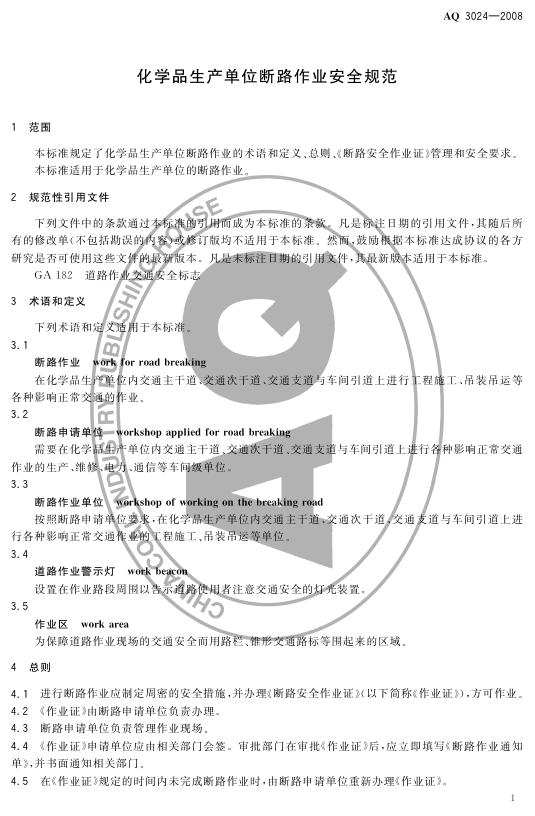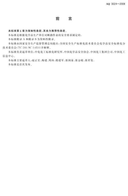 AQ 3024-2008 化学品生产单位断路作业安全规范