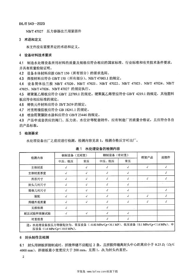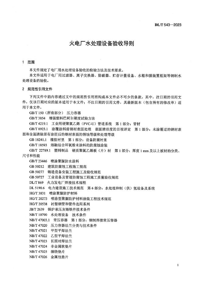 DL/T 543-2023 火电厂水处理设备验收导则