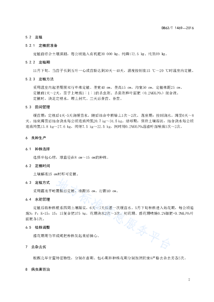 DB63/T 1469-2016 北早甘蓝良种生产技术规范