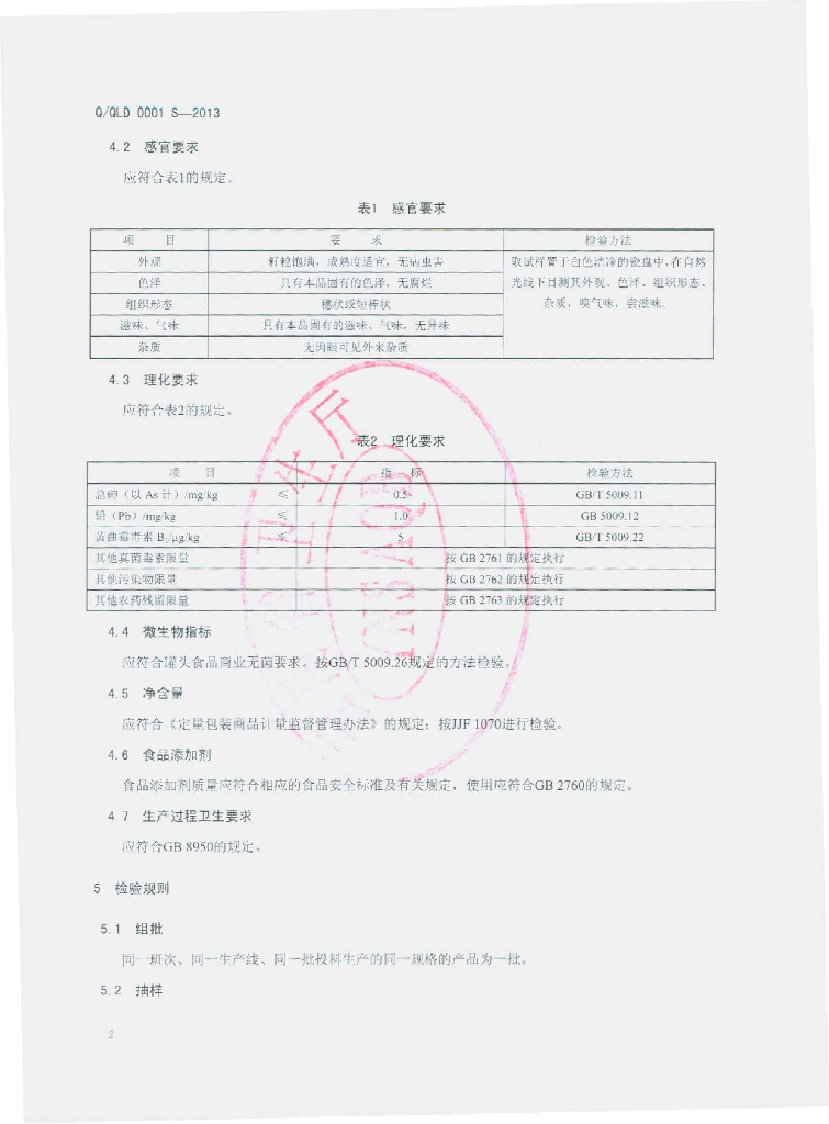 Q/QLD 0001S-2013 糯玉米(软罐头)
