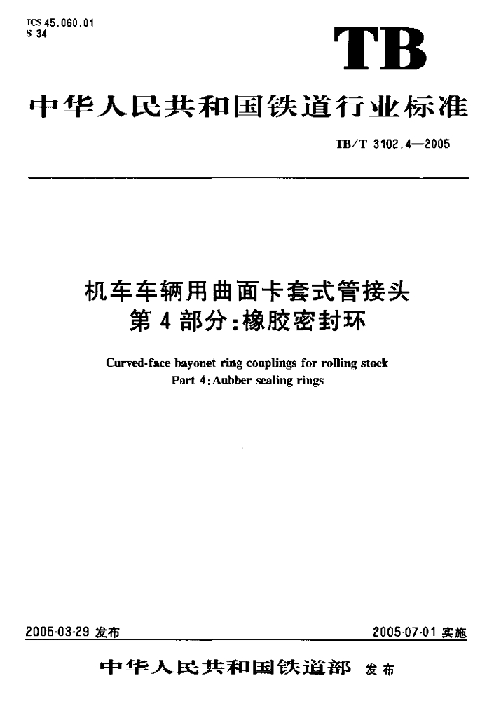 TB/T 3102.4-2005 机车车辆用曲面卡套式管接头 第4部分:橡胶密封环