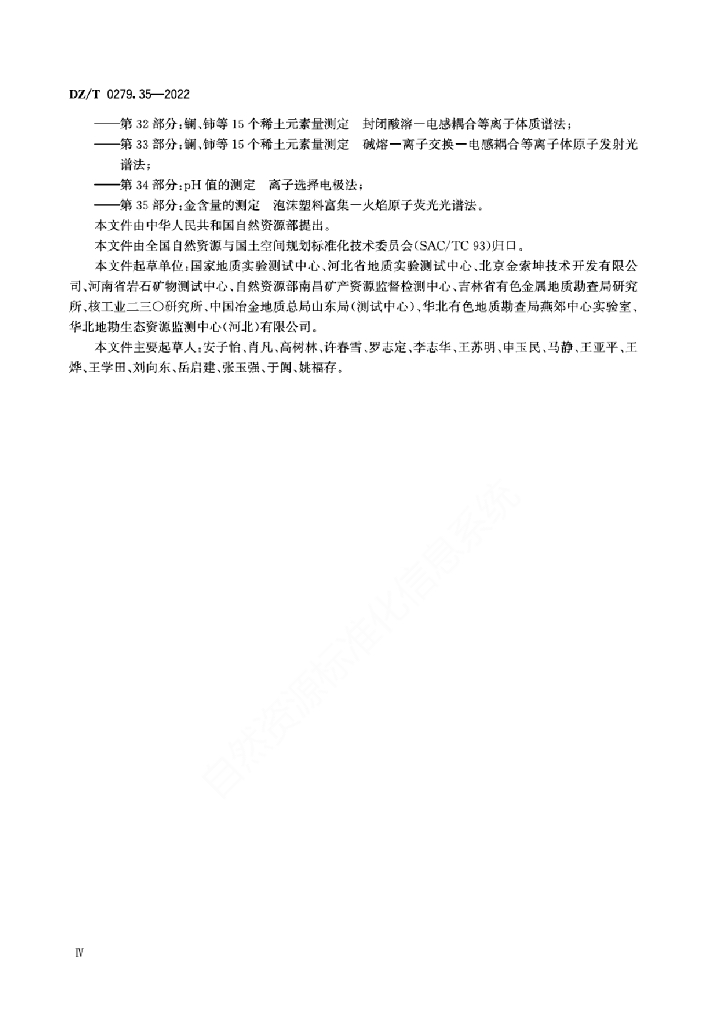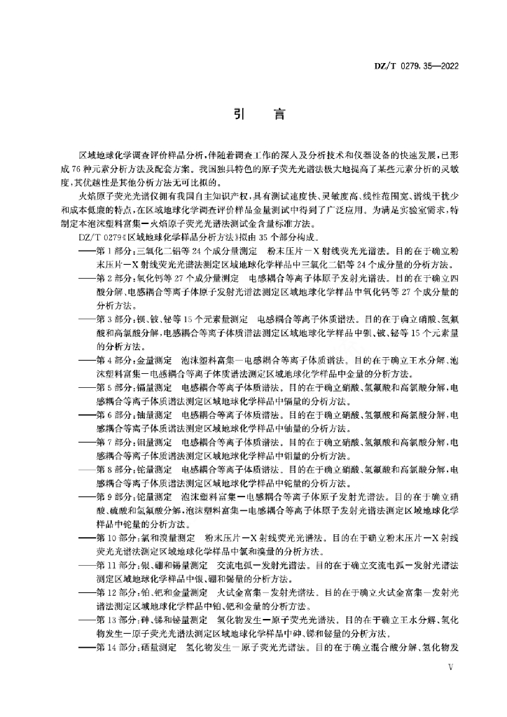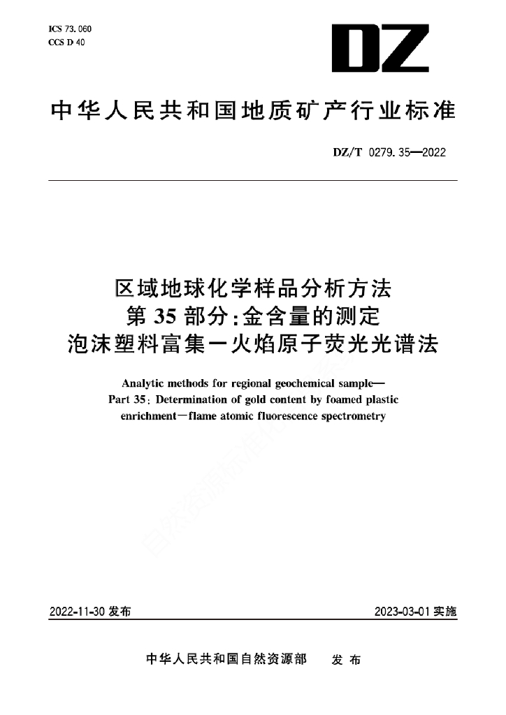 DZ/T 0279.35-2022 区域地球化学样品分析方法 第35部分:金含量的测定 泡沫塑料富集-火焰原子荧光光谱法