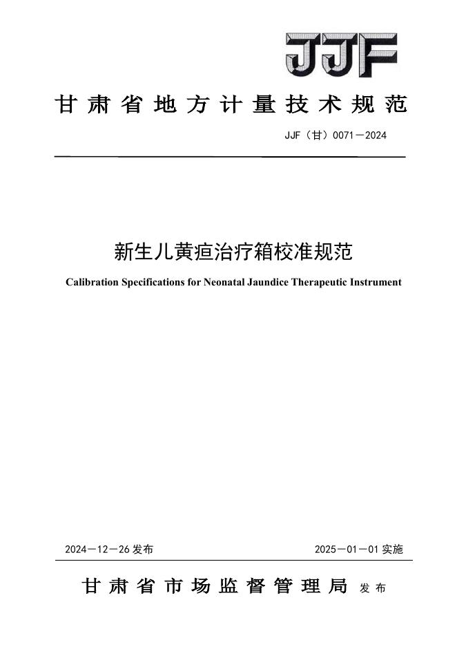 JJF(甘)0071-2024 新生儿黄疸治疗箱校准规范