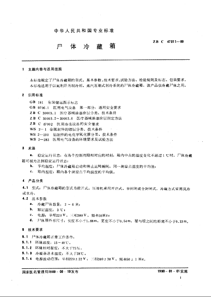 YY 91114-1999 尸体冷藏箱