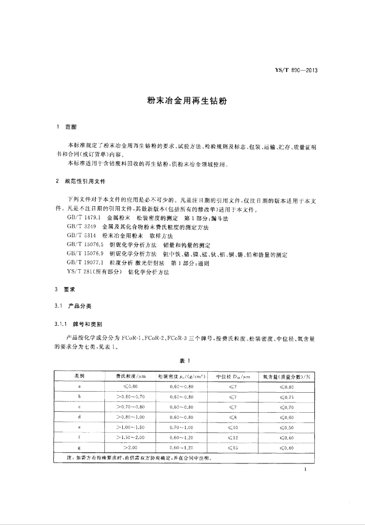 YS/T 890-2013 粉末冶金用再生钴粉