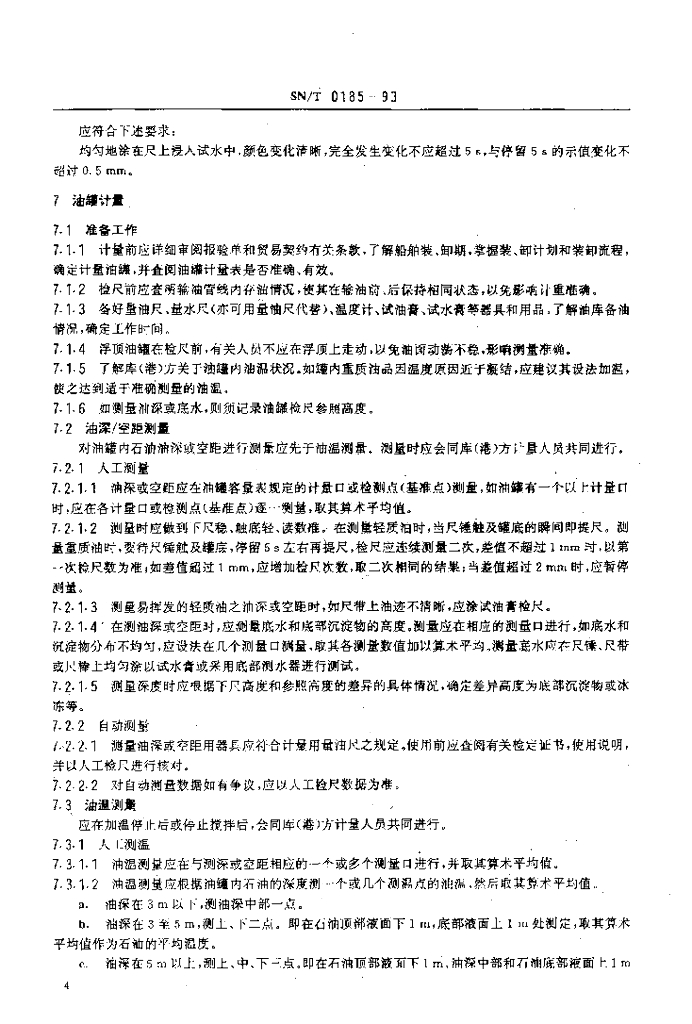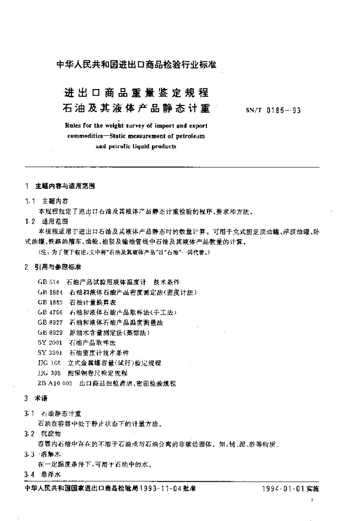 SN/T 0185-1993 进出口商品重量鉴定规程 石油及其液体产品静态计重