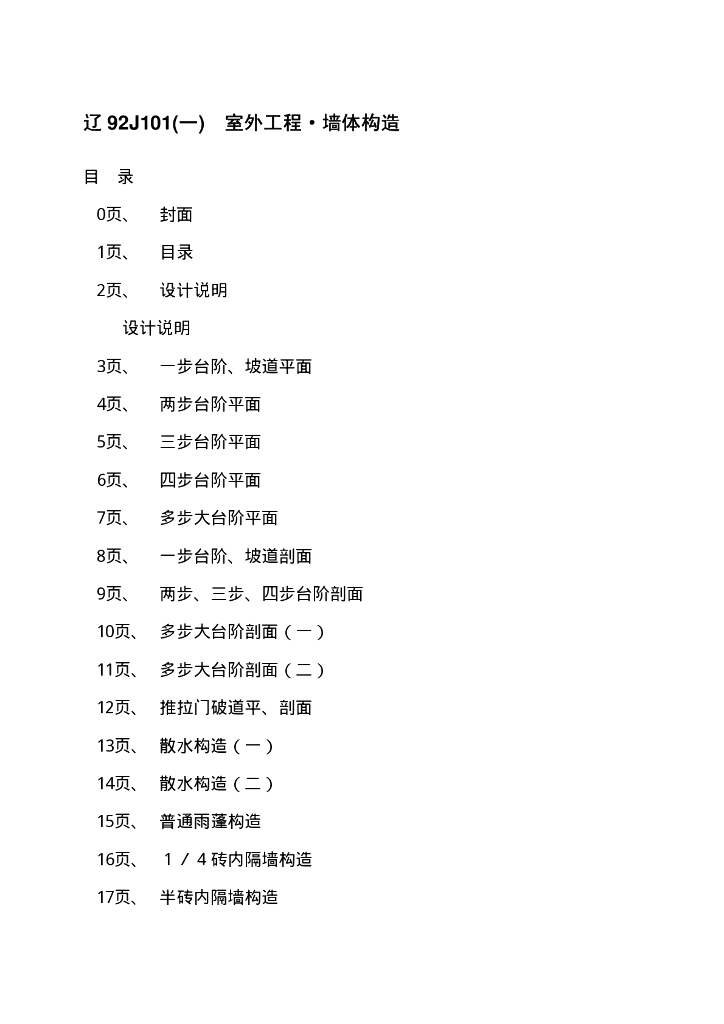 辽92J101(一) 室外工程·墙体构造图集