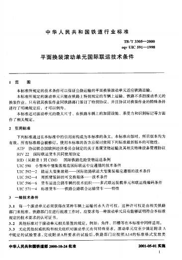 TB/T 3305-2000 平面换装滚动单元国际联运技术条件