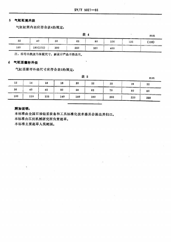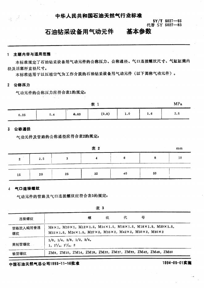 SY/T 5027-1993 石油钻采设备用气动元件基本参数