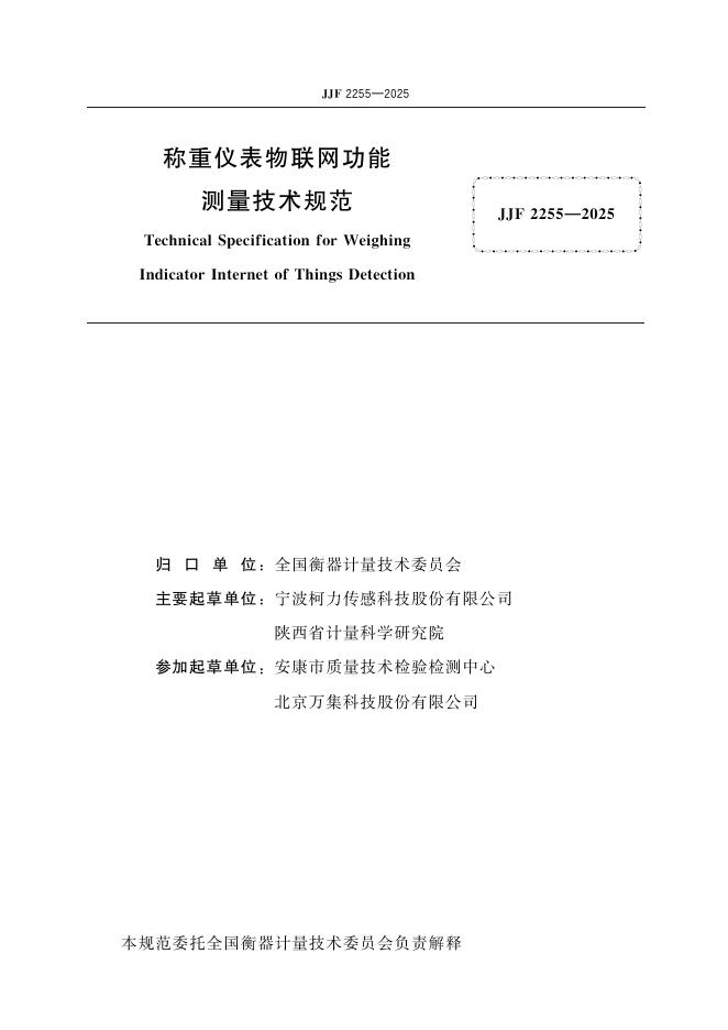 JJF 2255-2025 称重仪表物联网功能测量技术规范