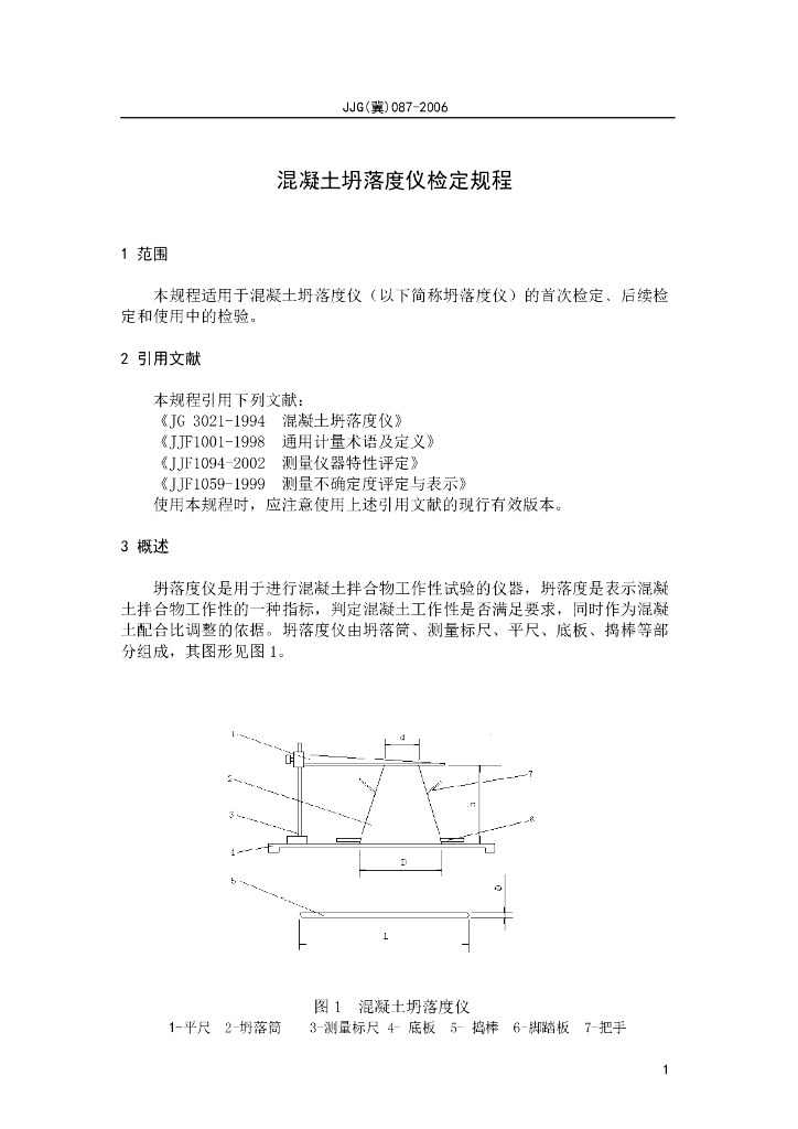 JJG(冀)087-2006 混凝土坍落度仪检定规程