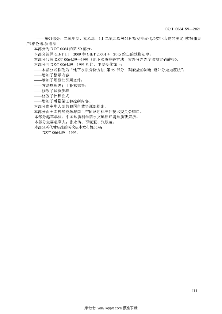 DZ/T 0064.59-2021 地下水质分析方法 第59部分:硝酸盐的测定紫外分光光度法