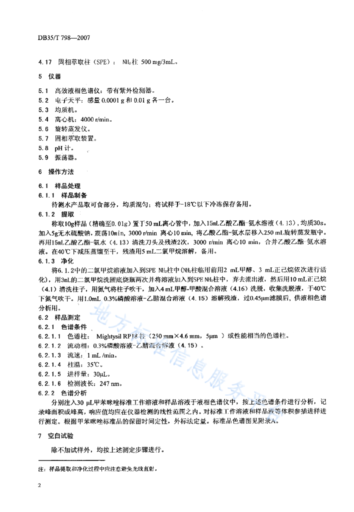 DB35/T 798-2007 水产品中甲苯眯唑残留量的测定 液相色谱法