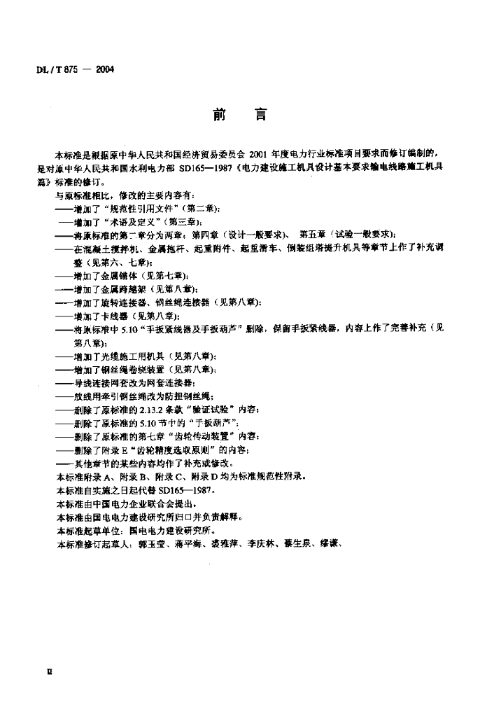 DL/T 875-2004 输电线路施工机具设计、试验基本要求