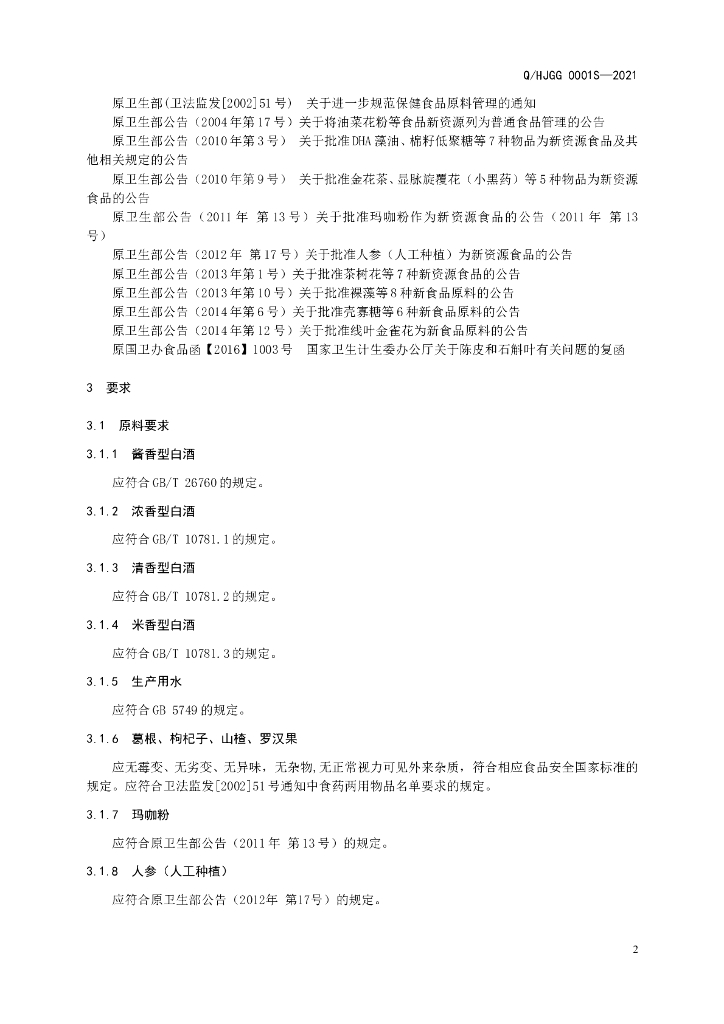 Q/HJGG 0001S-2021 聚元养生牌配制酒