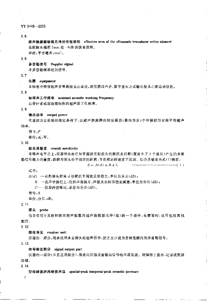 YY 0448-2003 超声多普勒胎儿心率仪