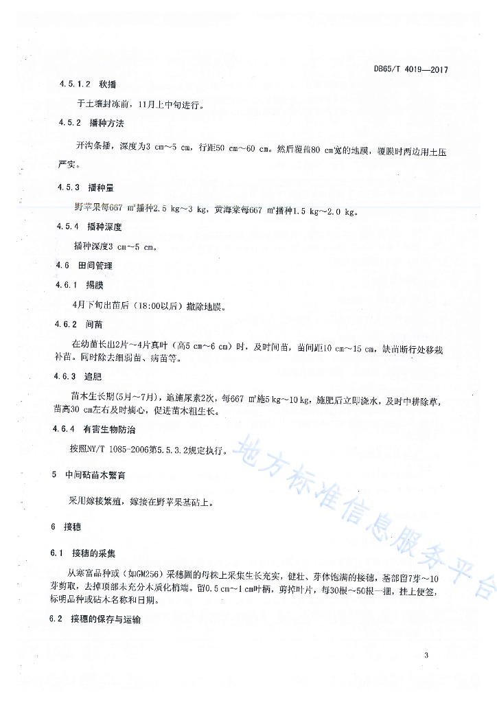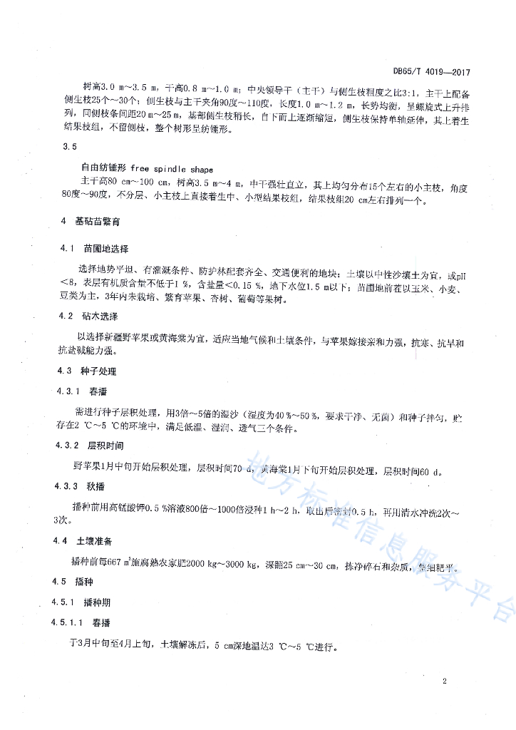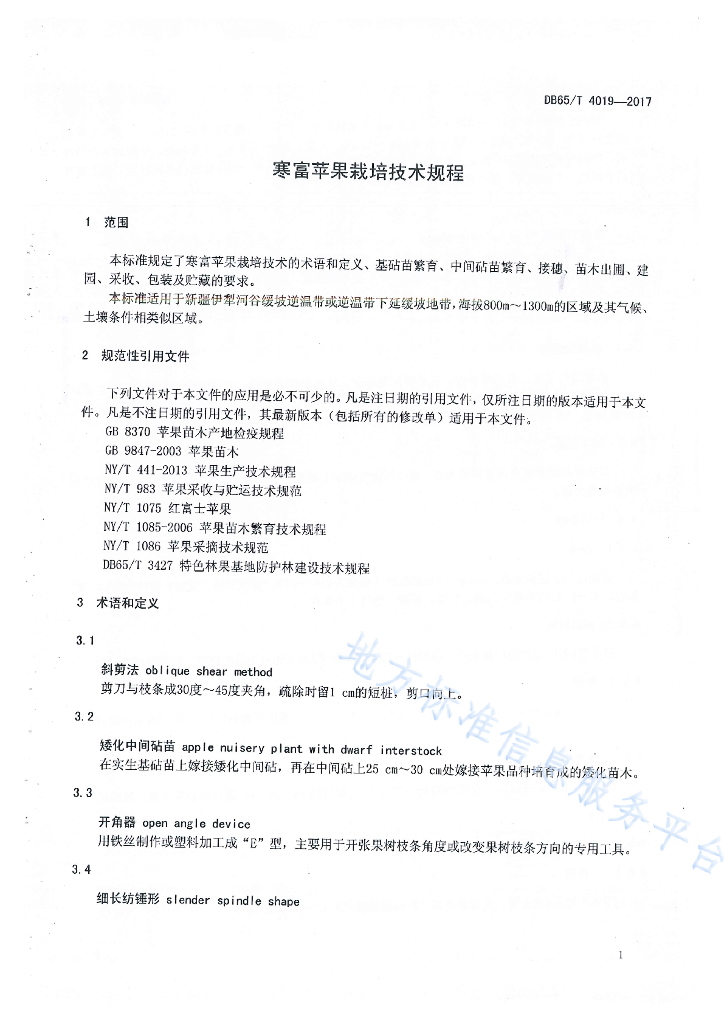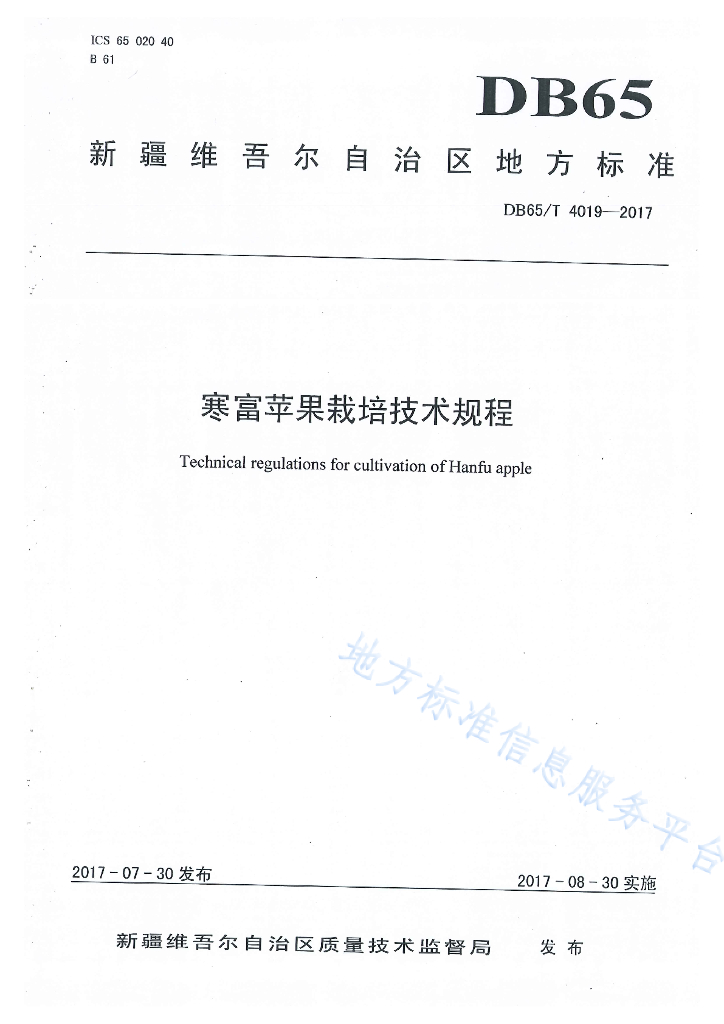 DB65/T 4019-2017 寒富苹果栽培技术规程
