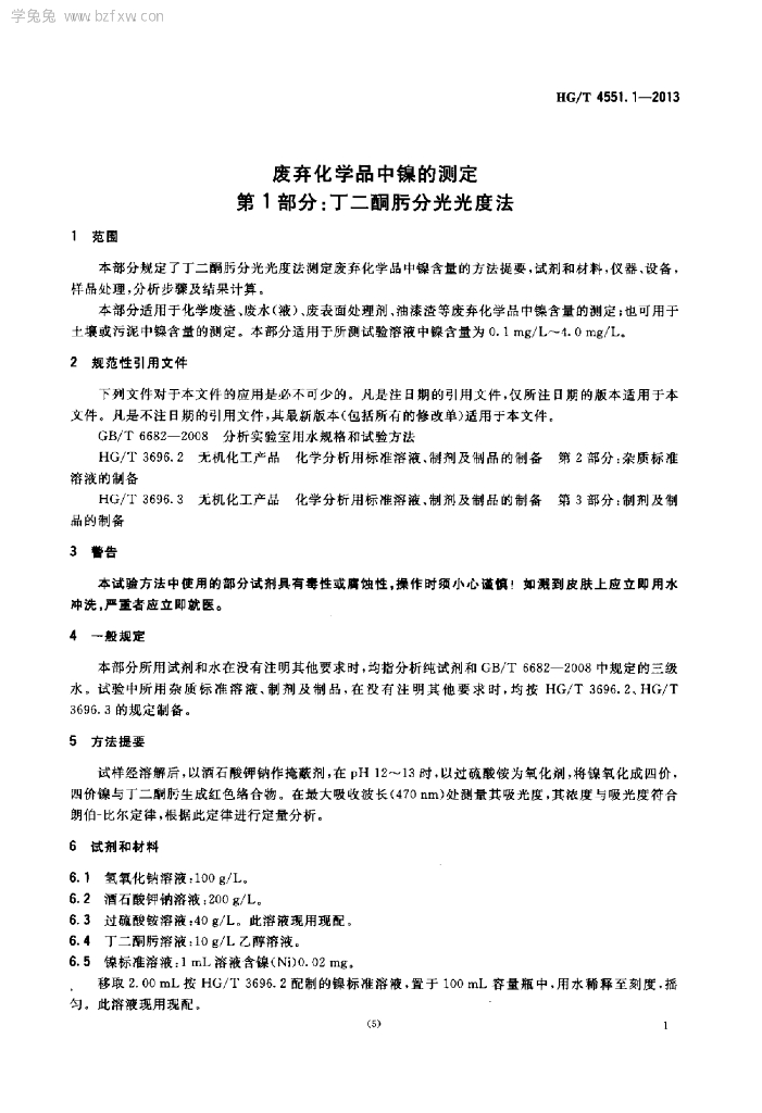 HG/T 4551.1-2013 废弃化学品中镍的测定 第1部分:丁二酮肟分光光度法