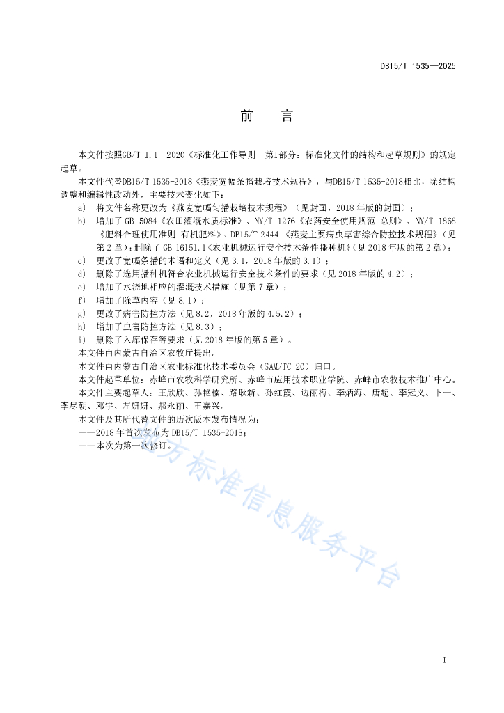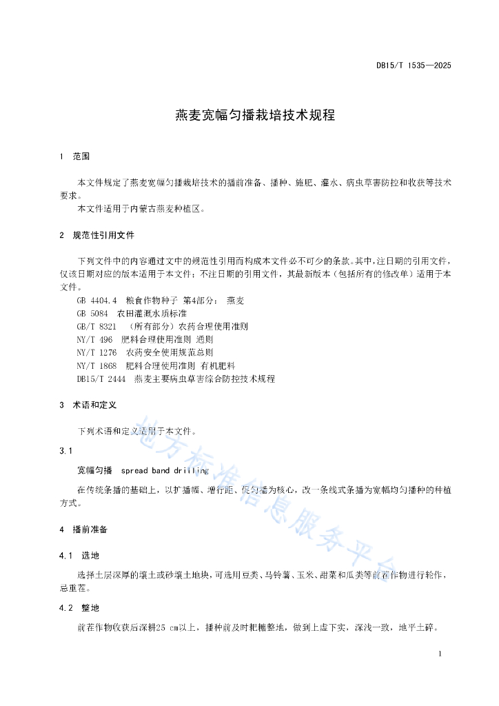 DB15/T 1535-2025 燕麦宽幅匀播栽培技术规程