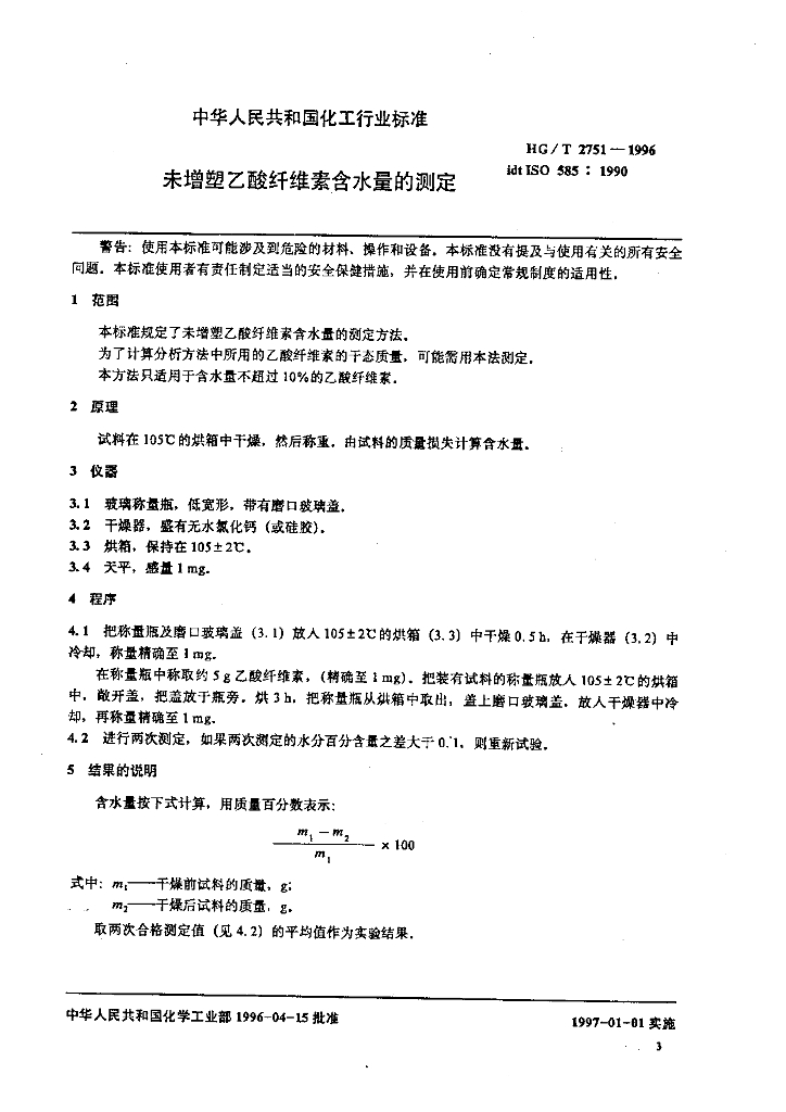 HG/T 2751-1996 未增塑乙酸纤维素含水量的测定