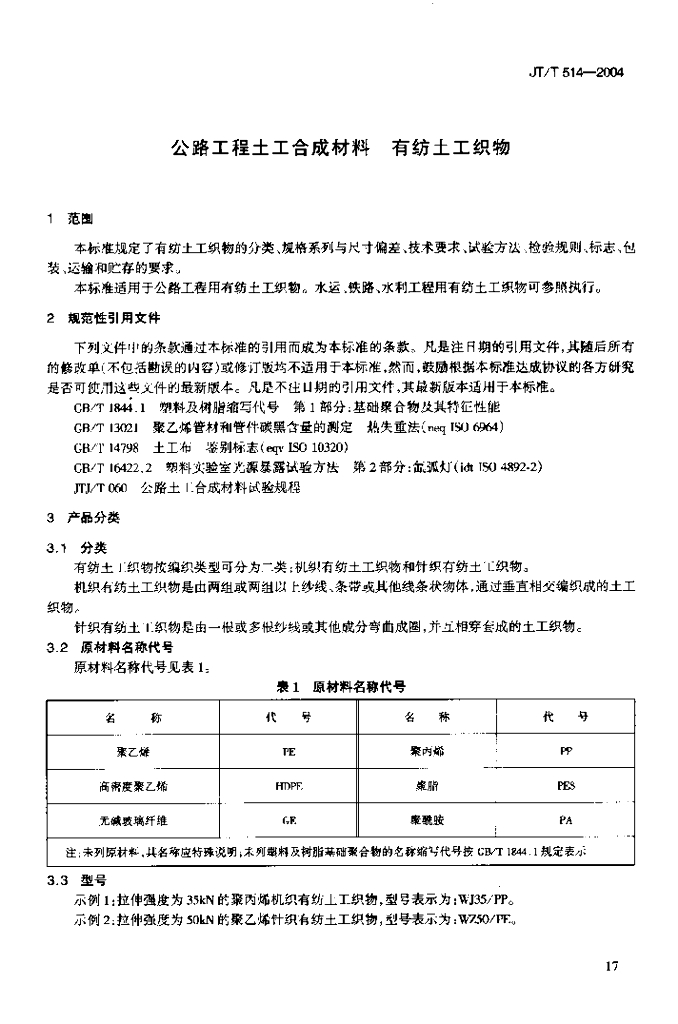 JT/T 514-2004 公路工程土工合成材料有纺土工织物