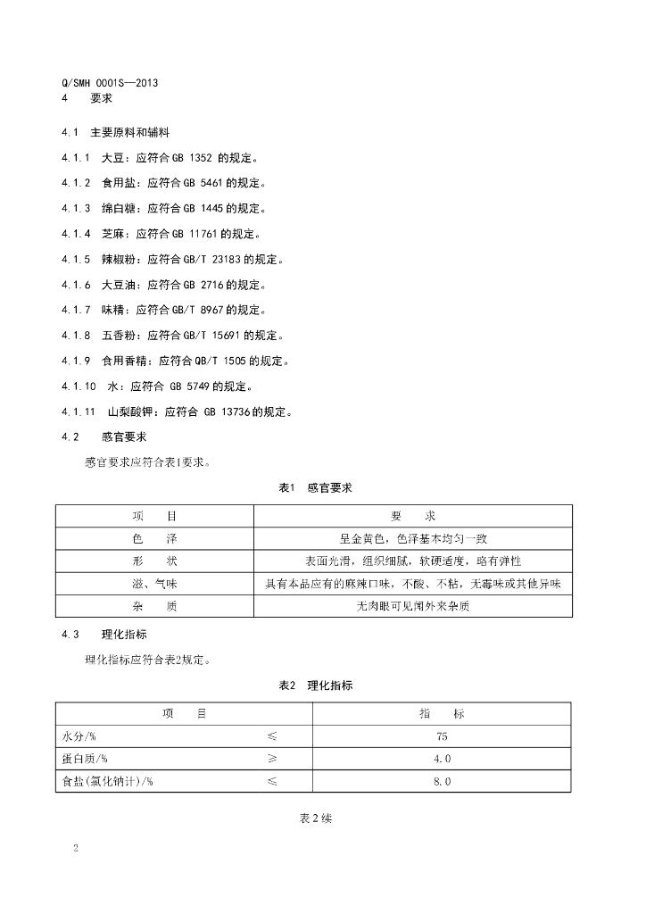 Q/SMH 0001S-2013 沈阳市沈北新区明华食品厂 五香干豆制品