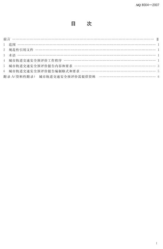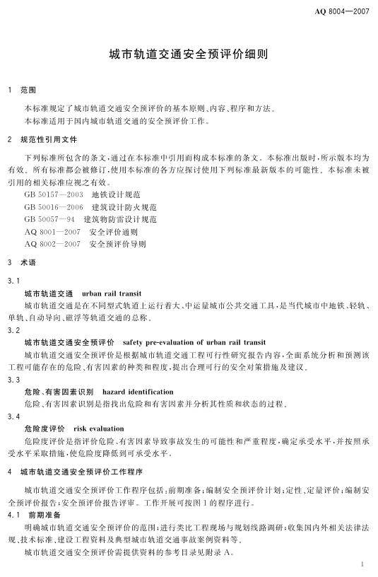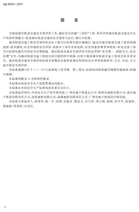 AQ/T 8004-2007 城市轨道交通安全预评价细则