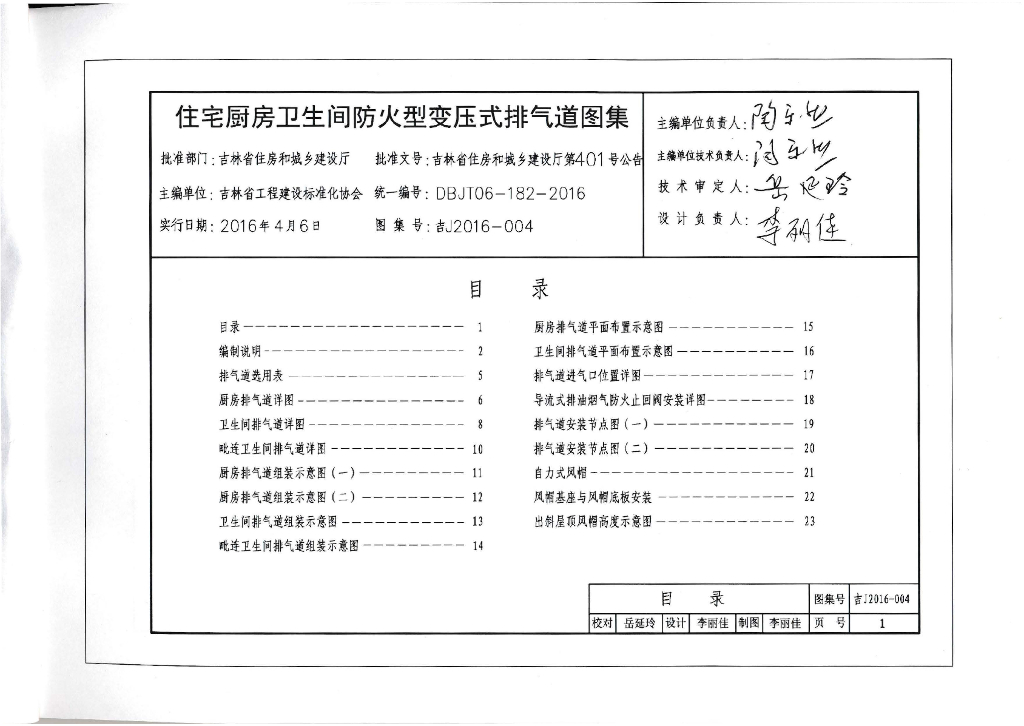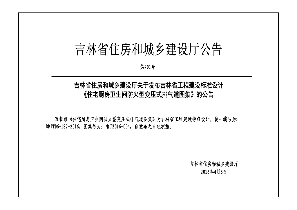 吉J2016-004 住宅厨房卫生间防火型变压式排气道图集