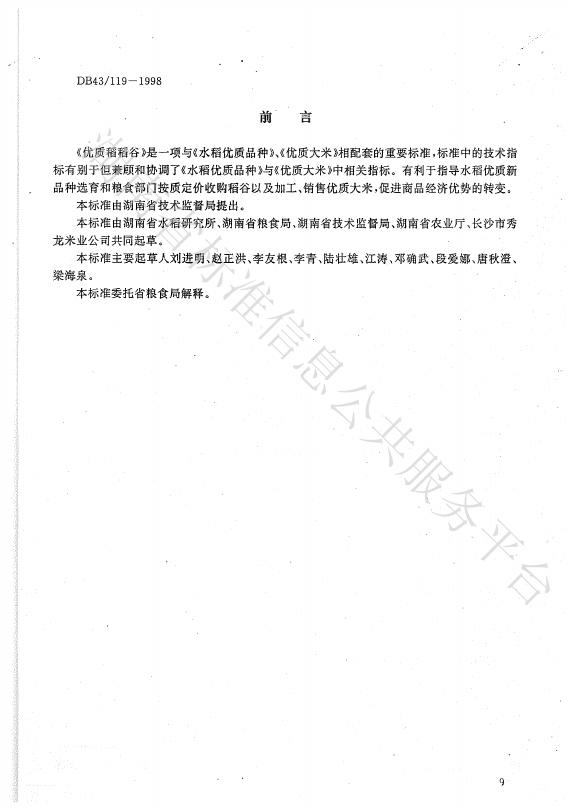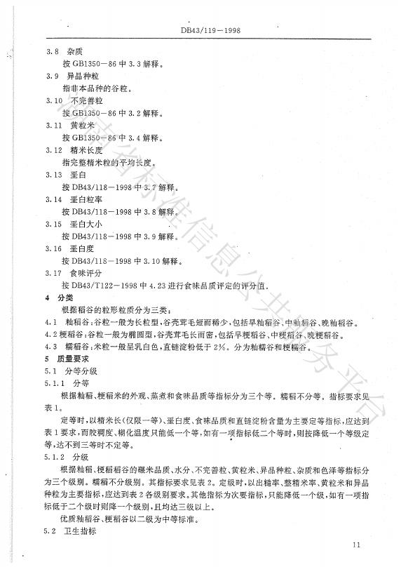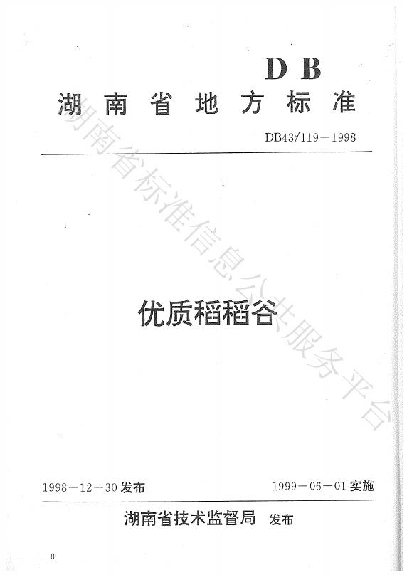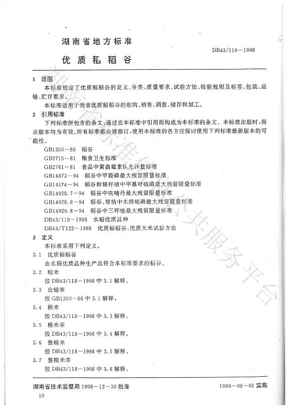 DB43/ 119-1998 优质稻稻谷