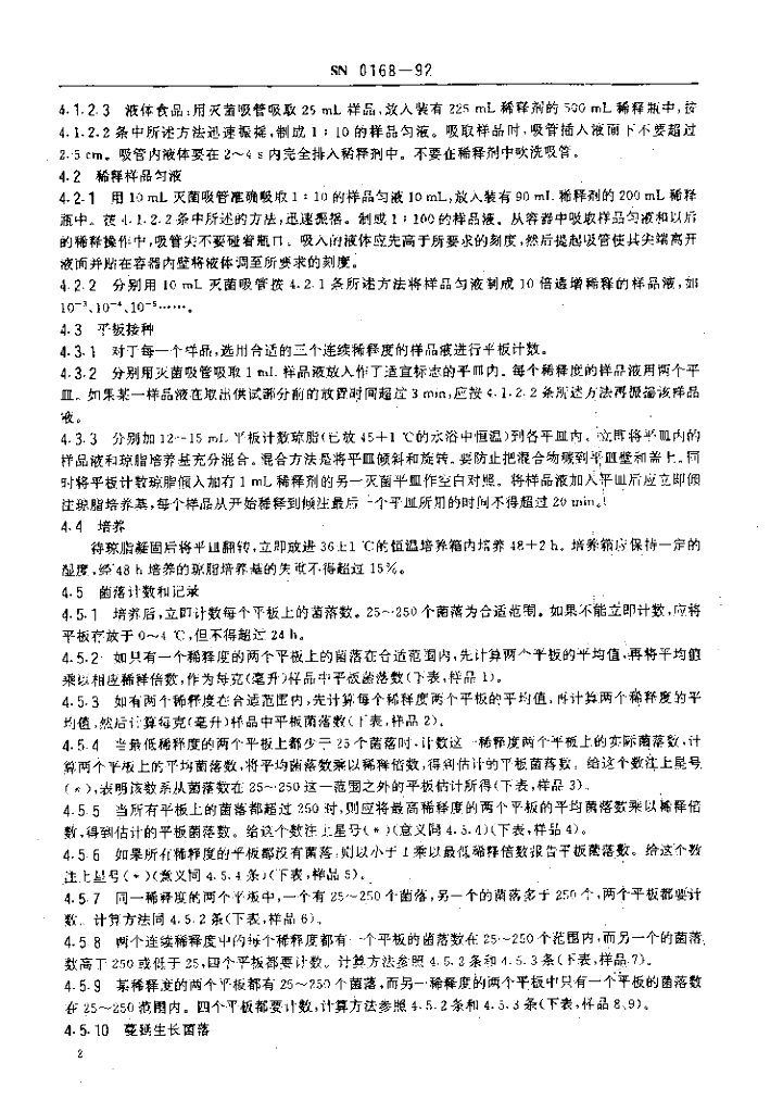 SN 0168-1992 出口食品平板菌落计数